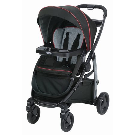 Deluxe stroller holds a child up to 50 pounds for comfortable strolling.